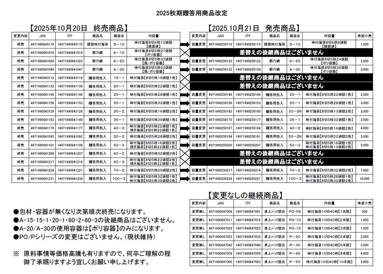 この度当店では10/21販売分より進物向け商品の容器変更をさせていただきます。