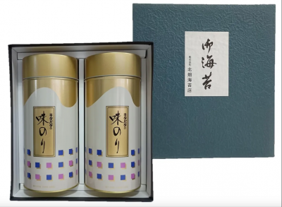 味付海苔を缶に密封しました。使用海苔は有明海の高等級海苔。